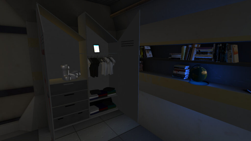 You are Isaac, a highly trained astronaut send on a repair mission into space. Everything goes well until you contact earth. Right in front of your eyes a disaster happens, leaving earth and your spaceship scarred. Can you repair your escape pod on time and get back to earth? This game can be played as a standard FPS or with VR. Inside the ship you can obtain multiple items and use them, one of them is a virtual VR helm